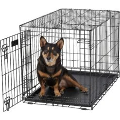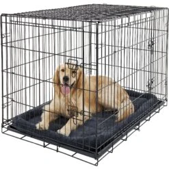 Frisco Heavy Duty Fold & Carry Single Door Collapsible Wire Dog Crate & Frisco Quilted Dog Crate Mat