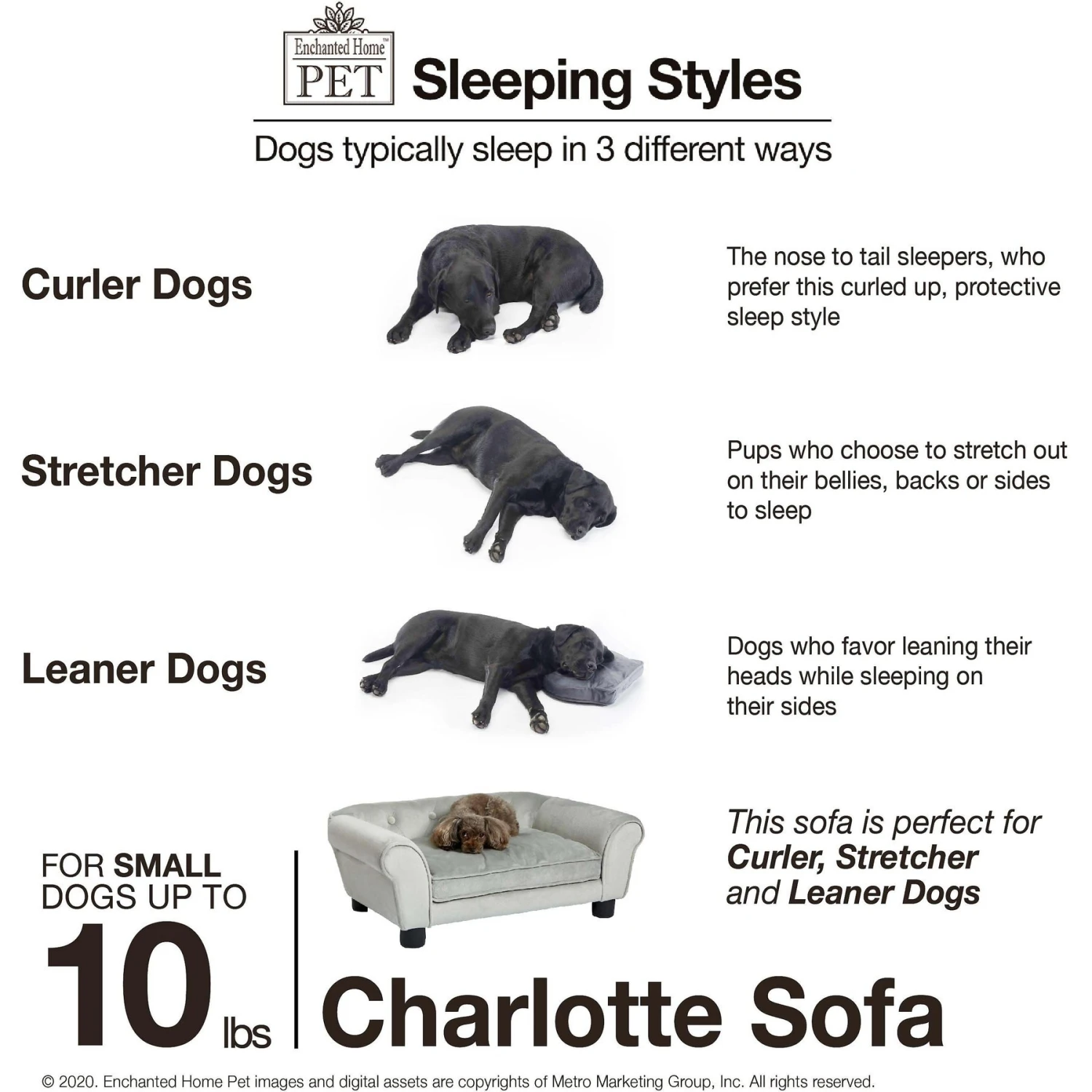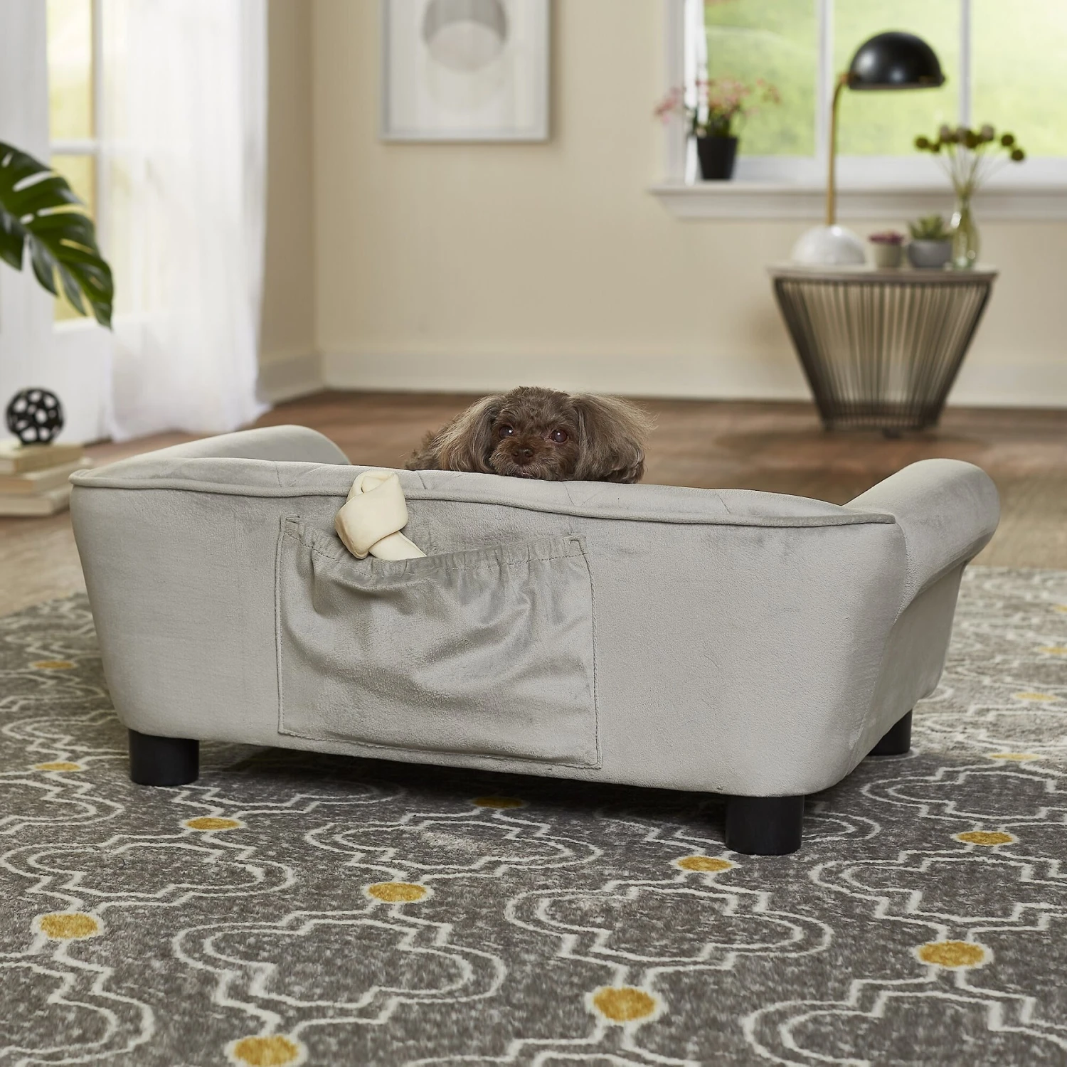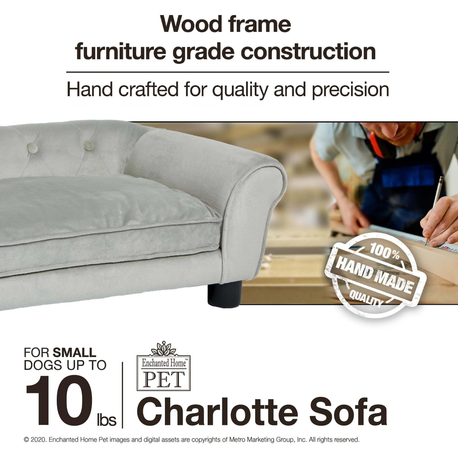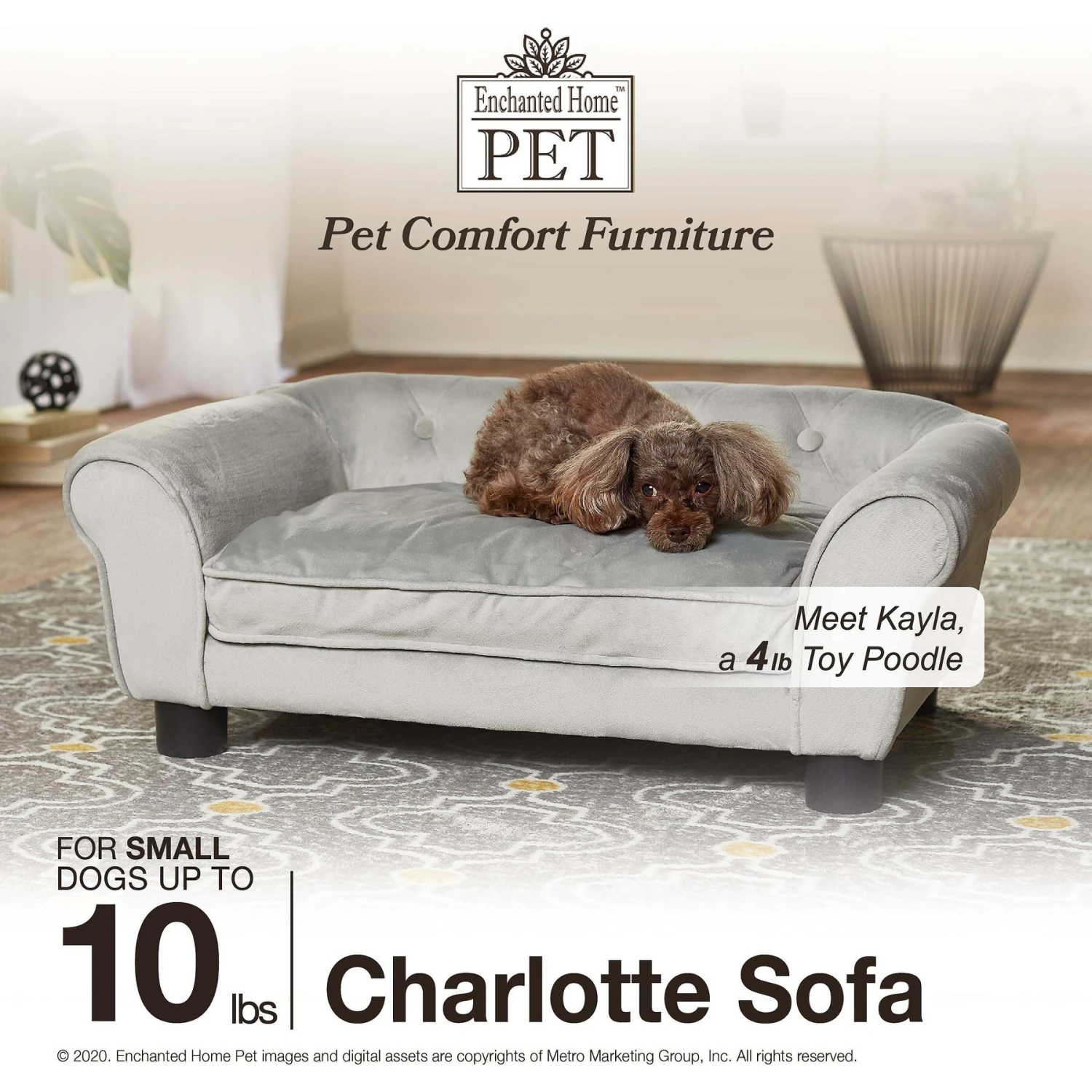 Your pup or kitten will enjoy a nice lay about on the classically styled Enchanted Home Pet Charlotte Sofa Cat & Dog Bed with Removable Cover. This pet bed has a calm, neutral tone with ultra-plush grey cushions and rolled arms, which are great to snuggle up against.
