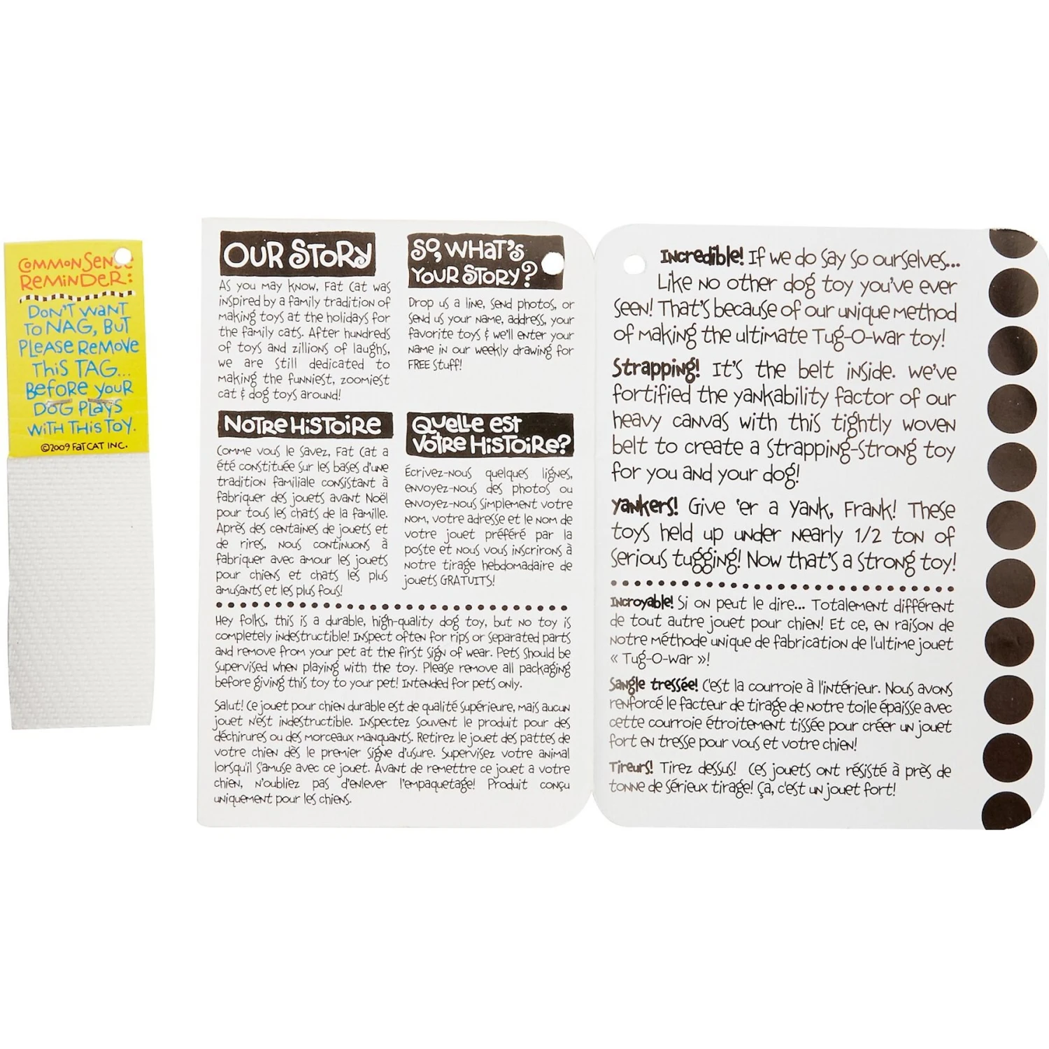 Strapping Strong Yankability! Like no other dog toy you’ve seen, the Incredible Strapping Yankers held up to nearly ton of yanking in lab tests (think scientific, not retrievers here, folks). Fortified by a tightly woven nylon strap inside. Strapping strong and includes a squeaker!