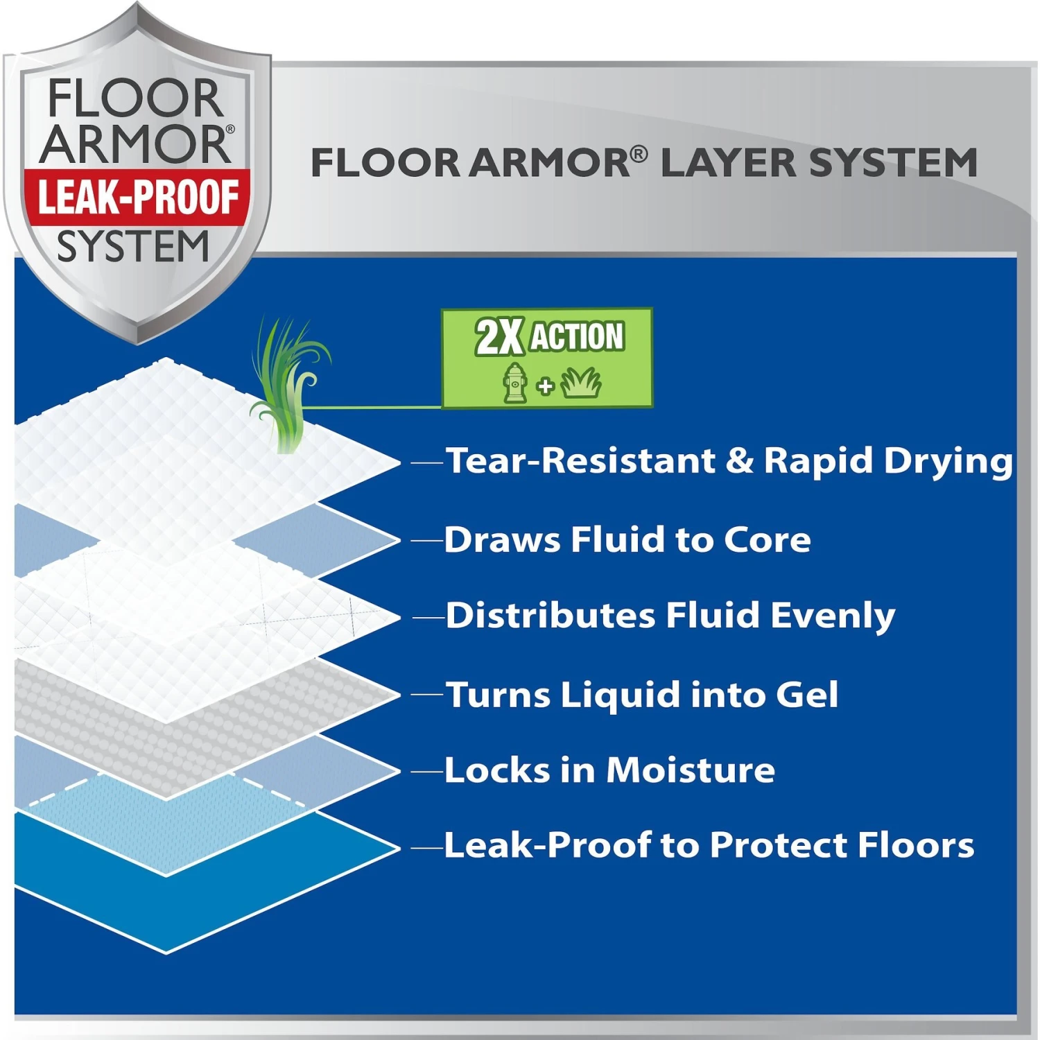 Four Paws Wee-Wee Ultimate Attractant Dog Pee Pads with Grass Scent are the paw-fect indoor potty solution for instinctive training and everyday use. These pads are enhanced with an inviting grass scent and targeted attractant to naturally draw your dog to the pad. No matter where your pup is trained to go, these grass scented puppy pads are the ideal solution. Outdoor-trained dogs will enjoy the familiar scent of this indoor potty spot. Or, if you want to train your dog to go outside, these pads help your pal associate the smell of grass with potty time. Each pad is designed with a six-layer Floor Armor System with a tear-resistant top layer, an absorbent polymer that turns liquid into gel and a leak-proof bottom layer to help keep floors dry. Plus, they’re ideal for dogs of all sizes!