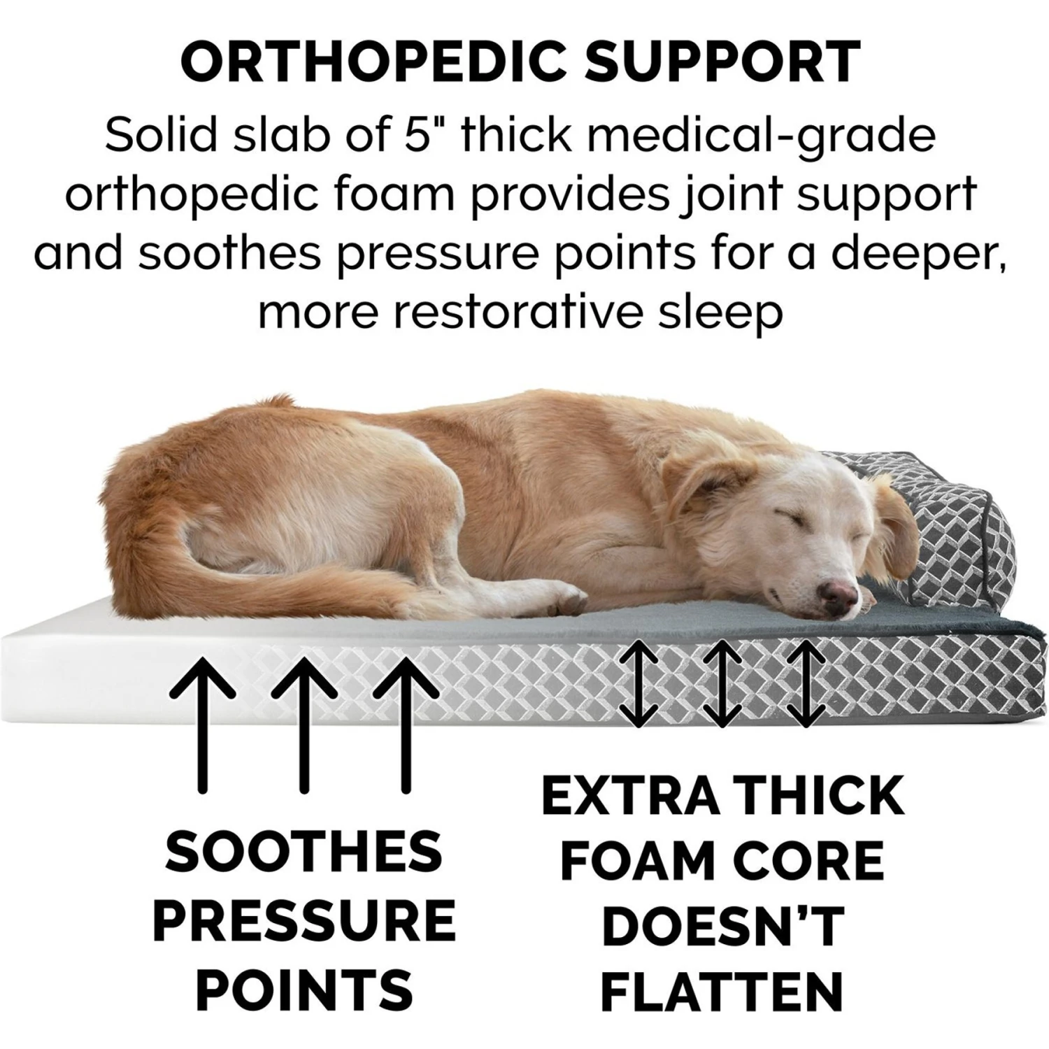 - Made from medical-grade orthopedic foam that cradles sleeping pets and helps to prevent painful pressure points.