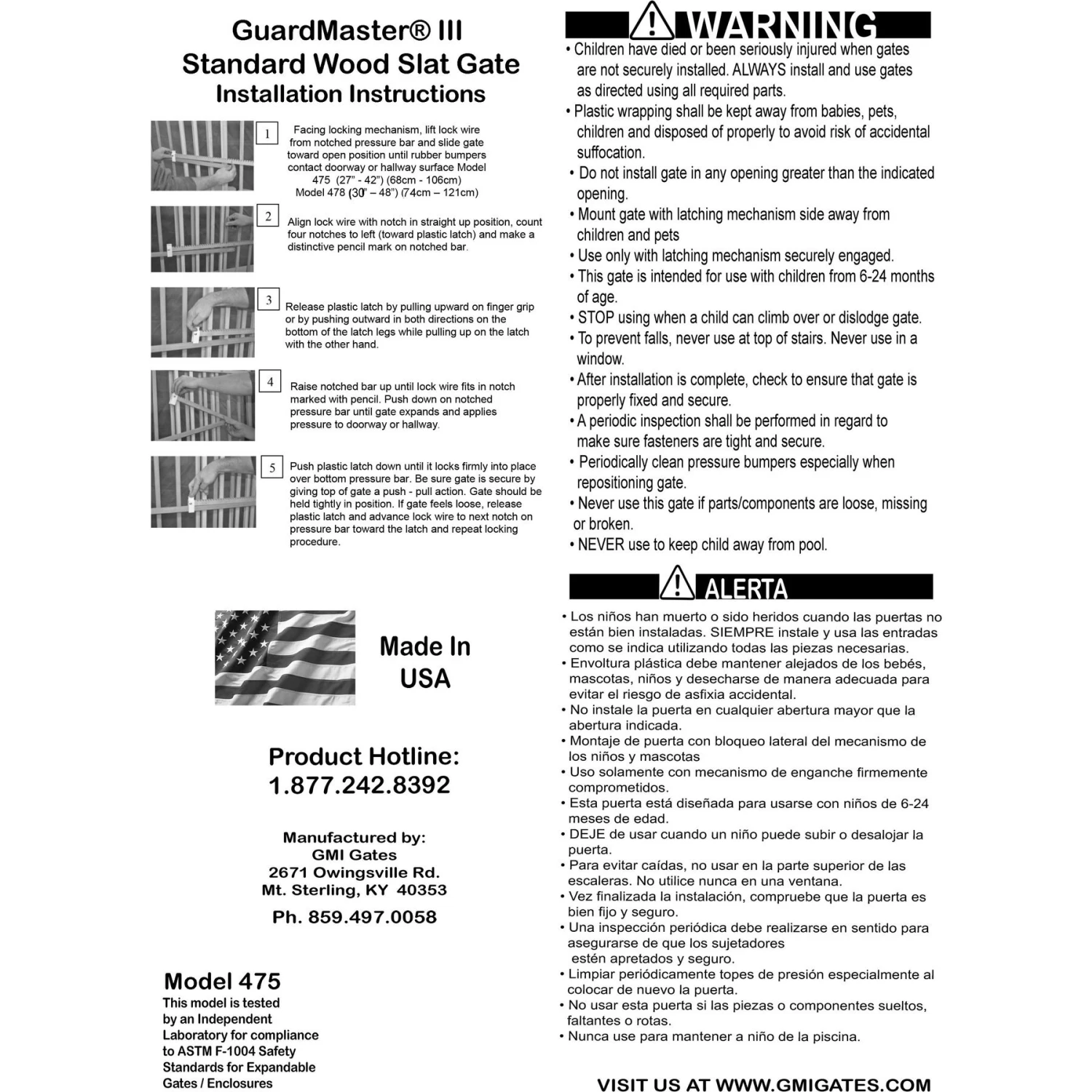 Keep your kids and your pets safe at home or on-the-go with the GuardMaster III Wood Slat Standard Pressure Mounted Dog Gate! This contemporary, pressure-mounted gate is made from durable, American hardwood. It features a single-hand quick release latch and wooden slats for added style and safety. It comes fully assembled and ready to use. If you’re looking for style and functionality, then this is the paw-fect gate for you and your family!