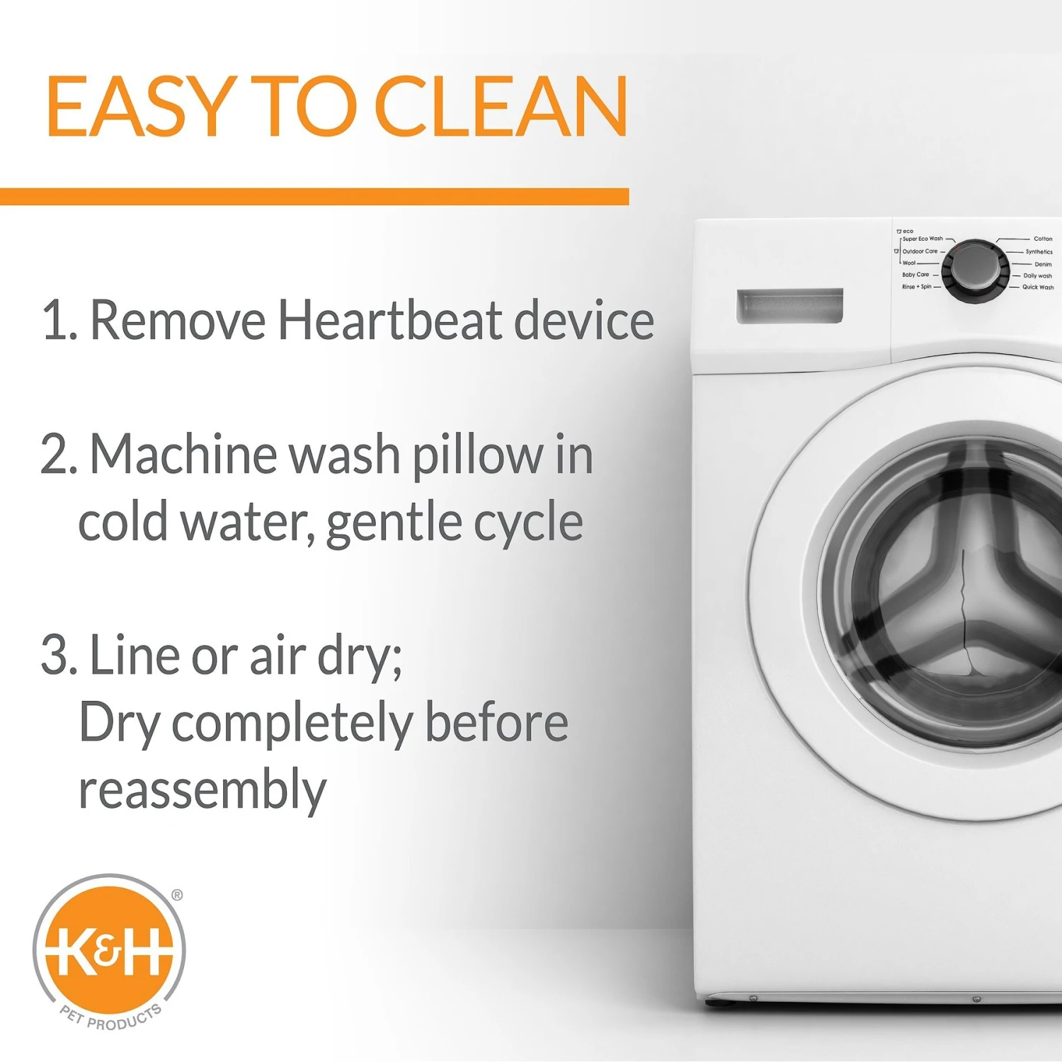 Used to calm puppies and reduce stress caused by fireworks, thunderstorms, separation anxiety and more. Helps with crate training by reducing adverse behaviors such as barking and whining. Helps pets transition to their new home. Indoor use only. Not intended for use by children. Pets can chew items unexpectedly. Remove toy immediately if torn or damaged. Seek veterinary attention if any material is ingested.; WASH/CARE INSTRUCTIONS: Remove heartbeat device. Pillow can be machine washed. Machine wash gentle, air dry.