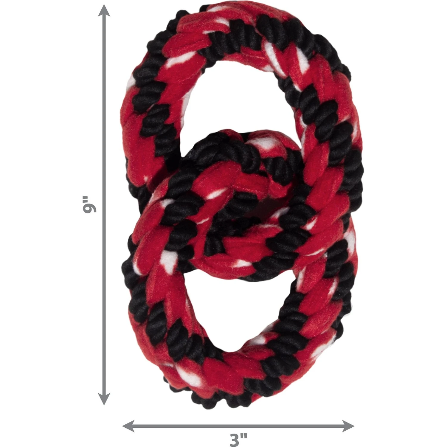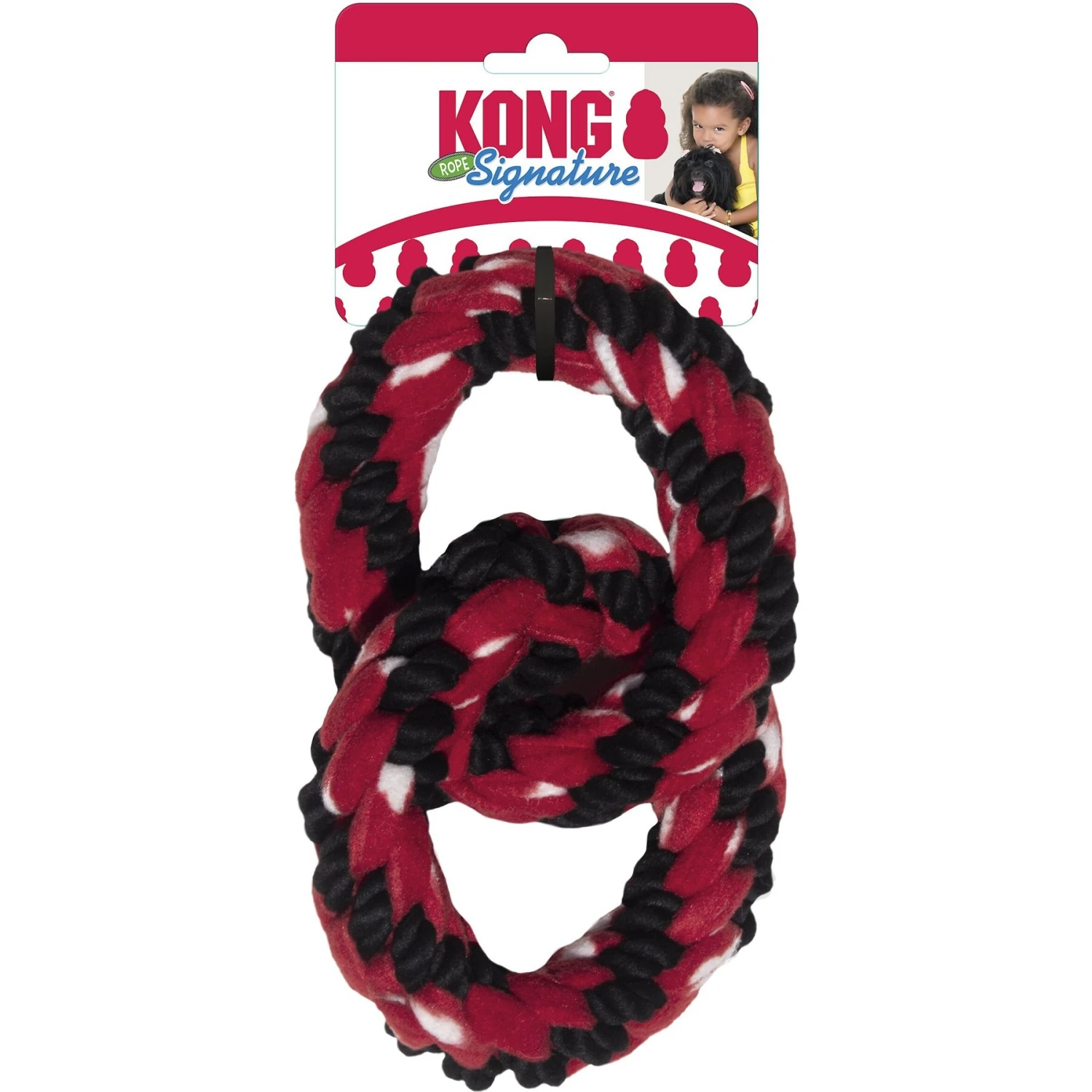 Double your fun! The KONG Signature Double Ring Tug Rope Dog Toy features a unique, double ring design that is engaging and entertaining. With soft cotton and fleece material that stretches and two handles for easy grabbing, this braided toy is perfect for gentle games of tug-of-war or fetch. Plus, the durable material can even help clean your dog’s teeth. For an interactive option to add to your canine companion’s toy box, this rope is a paw-fect choice.
