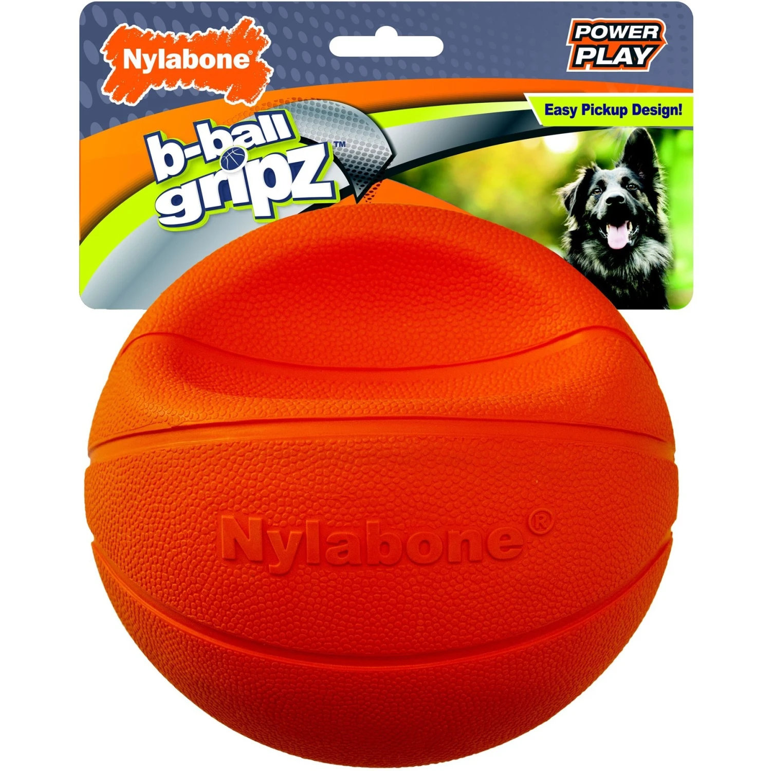 Add a new and fun exciting element to playtime with Nylabone’s Power Play B-Ball Gripz Dog Toy! This unique basketball has an indented shape, so it’s easier for your pup to pick it right up! Even though it’s flat on one side, it still great for rolling, and it stays put once it’s done, so your dog can grab the ball and go without the hassle. Plus, it delivers an unpredictable bounce to keep your paw-tner on his toes. The outside is made of durable rubber that has an authentic basketball texture and the inside contains a squeaker to pique your pup’s interest!