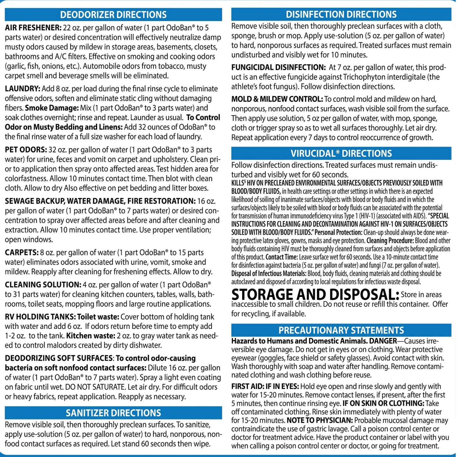 Hazards to Humans and Domestic Animals. DANGER—Causes irreversible eye damage. Do not get in eyes or on clothing. Wear protective eyewear (goggles, face shield or safety glasses). Avoid contact with skin. Wash thoroughly with soap and water after handling. Remove contaminated clothing and wash clothing before reuse. FIRST AID: IF IN EYES: Hold eye open and rinse slowly and gently with water for 15-20 minutes. Remove contact lenses, if present, after the first 5 minutes, then continue rinsing eye. IF ON SKIN OR CLOTHING: Take off contaminated clothing. Rinse skin immediately with plenty of water for 15-20 minutes. NOTE TO PHYSICIAN: Probable mucosal damage may contraindicate the use of gastric lavage. Call a poison control center or doctor for treatment advice. Have the product container or label with you when calling a poison control center or doctor, or going for treatment.
