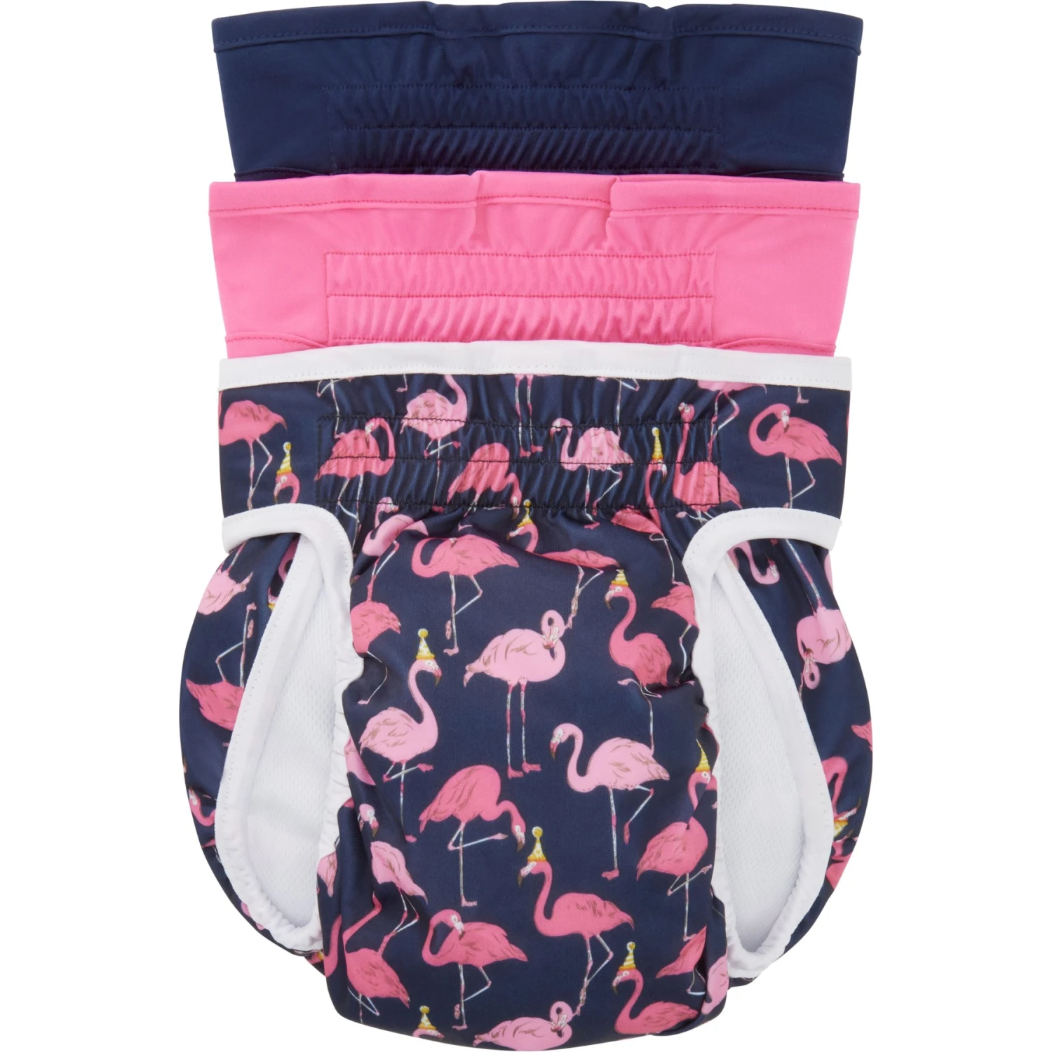 Frisco Washable Female Diaper, Flamingo, Medium, 3pk—Keep your pup protected while they get the hang of potty training with these washable, reusable diapers from Frisco by Chewy. They’re specifically designed for the ladies to be effective and comfortable so you and your pet can feel secure, and they can strut their stuff. An inner microfiber towel absorbs liquids and a waterproof outer layer doubles up on the leak protection. Not only do these diapers help handle messes, they also have a hole for her tail and come in different colors, including a flamingo pattern so everyone can see her stylish satisfaction. Three reusable diapers are included so you can easily wash and use again to cut back on throwaways while your pup shows off her style.