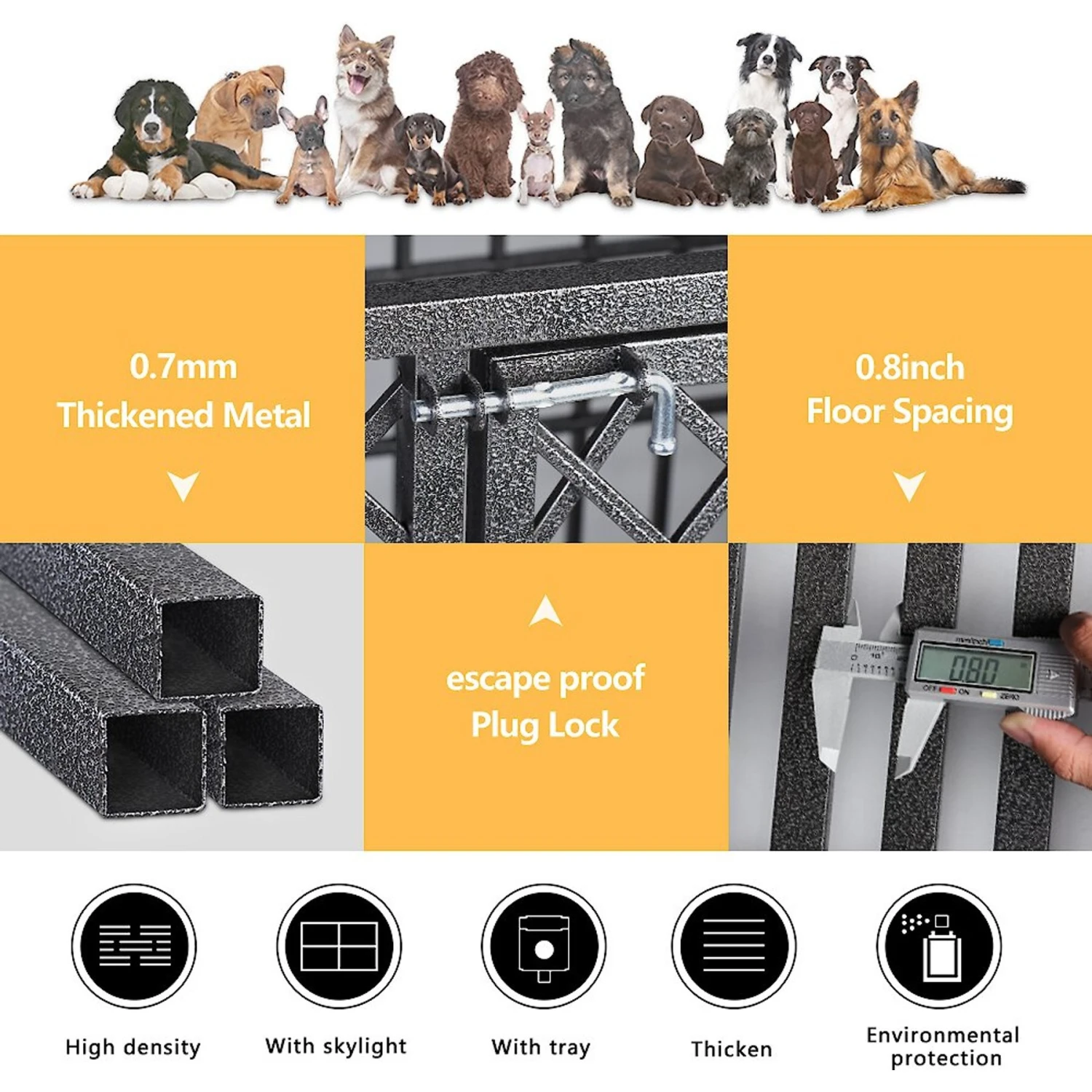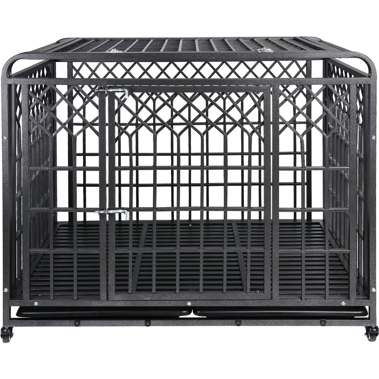 Every dog deserves a safe, cozy place to call his own, so give your fur baby his own little space with a SMONTER Heavy Duty Double Lock Metal Large Breed Dog Crate. Welded with durable steel bars with a nontoxic finish, this crate has a unique Y-shaped design and rounded edges that keep your household safe from sharp corners and your pup safe if he gnaws and bites the frame. Featuring a double lock with safety latches, this comfortable crate keeps your pal safely and securely contained. The spacious double doors make entry, feeding, and petting simple as well. Plus, the removable, washable plastic tray on the bottom collects fallen food and any potential ‘accidents,’ meaning you can easily keep your pup’s humble abode clean. Its portable too—four lockable wheels makes transporting this crate simple. It’s the paw-fect home for larger dogs.