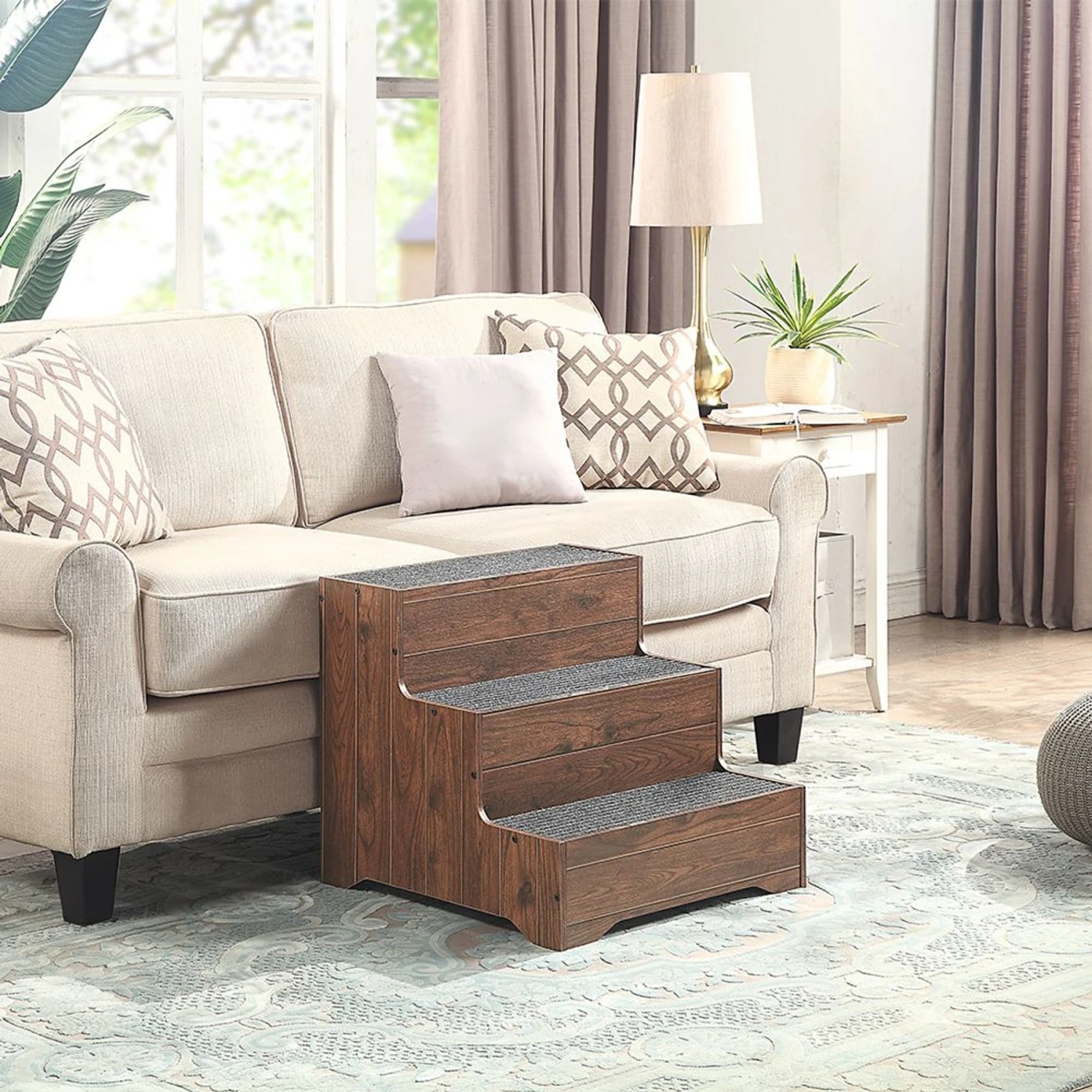 Your furbaby has important places to be—help him get there comfortably with the Unipaws Wooden Three-Story Dog Ladder! With a weight capacity of 125 pounds, these durable stairs can help your pal reach their favorite places fast. The thoughtful design helps reduce the physical impact of jumping, so it’s paw-fect for small, elderly, injured or arthritic pets. A wooden exterior easily complements most home decor. Plus, the steps feature a soft carpet that helps your friend get a good, confident grip.