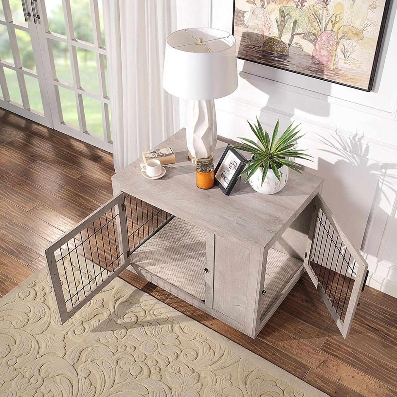 Your paw-some pup will be the bark of the town with the Unipaws Wooden Wire Furniture Style Dog Crate, which features an elegant wooden frame, double doors on the front and an additional side door for easy entry and exit, and a cozy removable cushion! It also features a wide, flat top for use as a nightstand or end table. Your barking bestie is sure to love this cozy crate, and pet paw-rents will love the easy clean-up and chic, yet functional design!